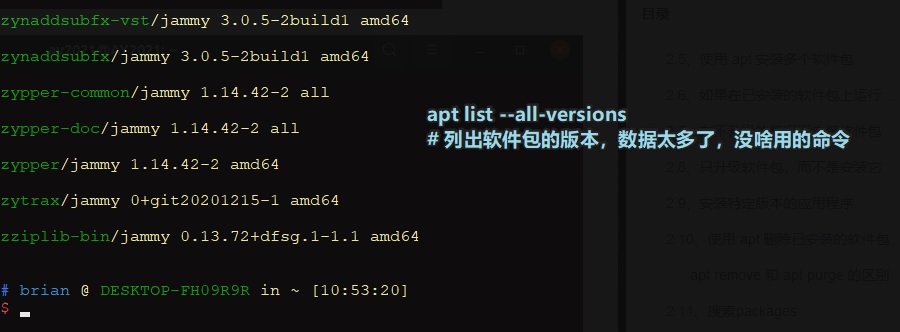 一般是在安装或卸载软件包前查找一下具体情况,内容过于详细,除非知道绝对正确的报名,不然不要用这个命令。sudo apt show <包名> # 可以达到同样的搜索效果。